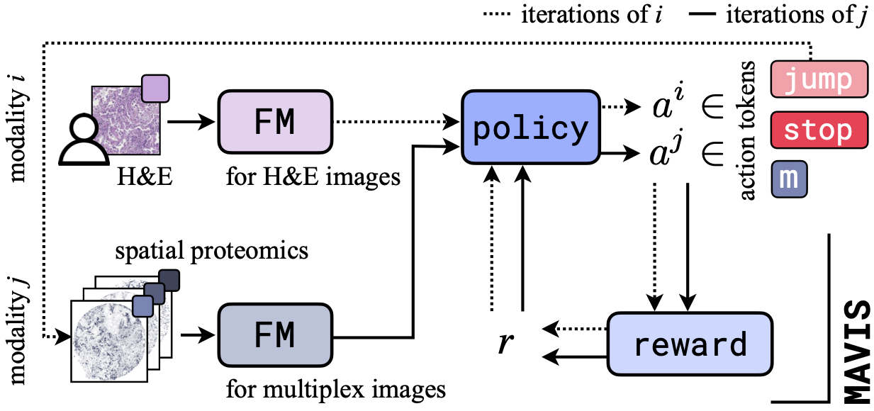 The clinical routine has access to an ever-expanding repertoire of diagnostic tests, ranging from routine imaging to sophisticated molecular profiling technologies. Foundation models have recently emerged as powerful tools for extracting and integrating diagnostic information from these diverse clinical tests, advancing the idea of comprehensive patient digital twins. However, it remains unclear how to select and design tests that ensure foundation models can extract the necessary information for accurate diagnosis. We introduce MAVIS (Multi-modal Active VIew Selection), a reinforcement learning framework that unifies modality selection and feature selection into a single decision process. By leveraging foundation models, MAVIS dynamically determines which diagnostic tests to perform and in what sequence, adapting to individual patient characteristics. Experiments on real-world datasets across multiple clinical tasks demonstrate that MAVIS outperforms conventional approaches in both diagnostic accuracy and uncertainty reduction, while reducing testing costs by over 80%, suggesting a promising direction for optimizing clinical workflows through intelligent test design and selection.